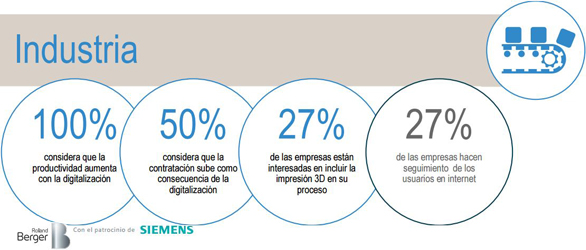 La consultora Roland Berger ha realizado, con el patrocinio de Siemens, el primer estudio sobre la Digitalización de la Actividad Económica en España 4.0. Este informe, pionero hasta ahora en nuestro país, analiza el estado de la transformación digital en los sectores económicos más importantes. Destacamos a continuación la información más relevante referida al sector industrial.