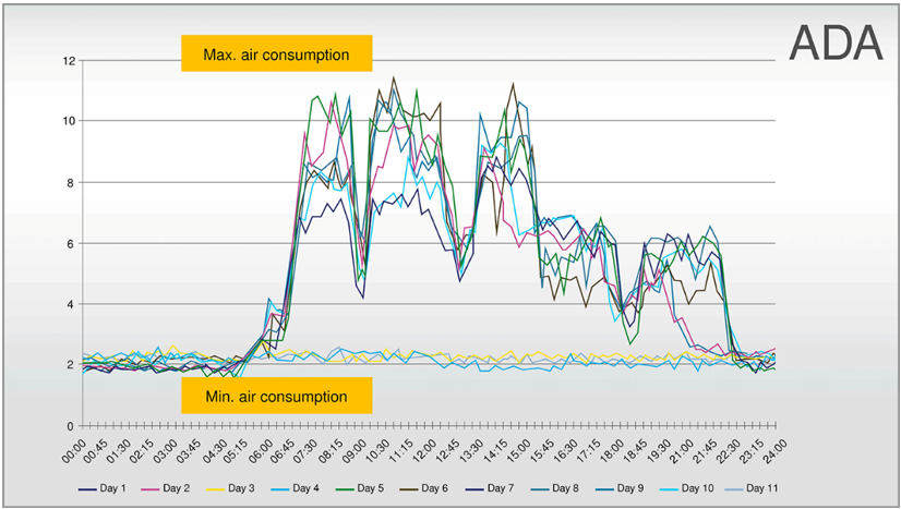 En Kaeser Compresores se realizan estudios de consumo con herramientas como el ADA (Análisis de Demanda de Aire), que registran datos reales en campo. Con esta información, se diseñan soluciones basadas en necesidad real, evitando sobredimensionamientos costosos.